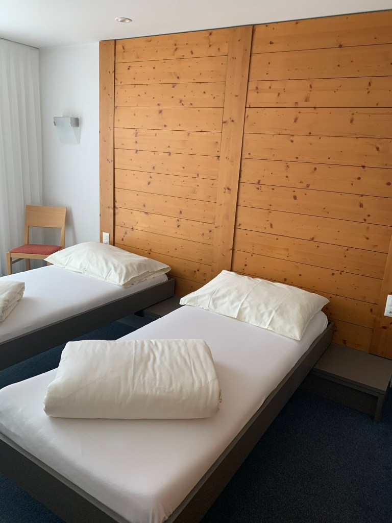 8月にヨーロッパに着いて急に予定を変えるが、もうホテルはいっぱい。取れたのは少し割高のハイジホテル。これも偶然と思うと嬉しい。ホテルはマイエンフェルト駅のすぐ裏にあった。