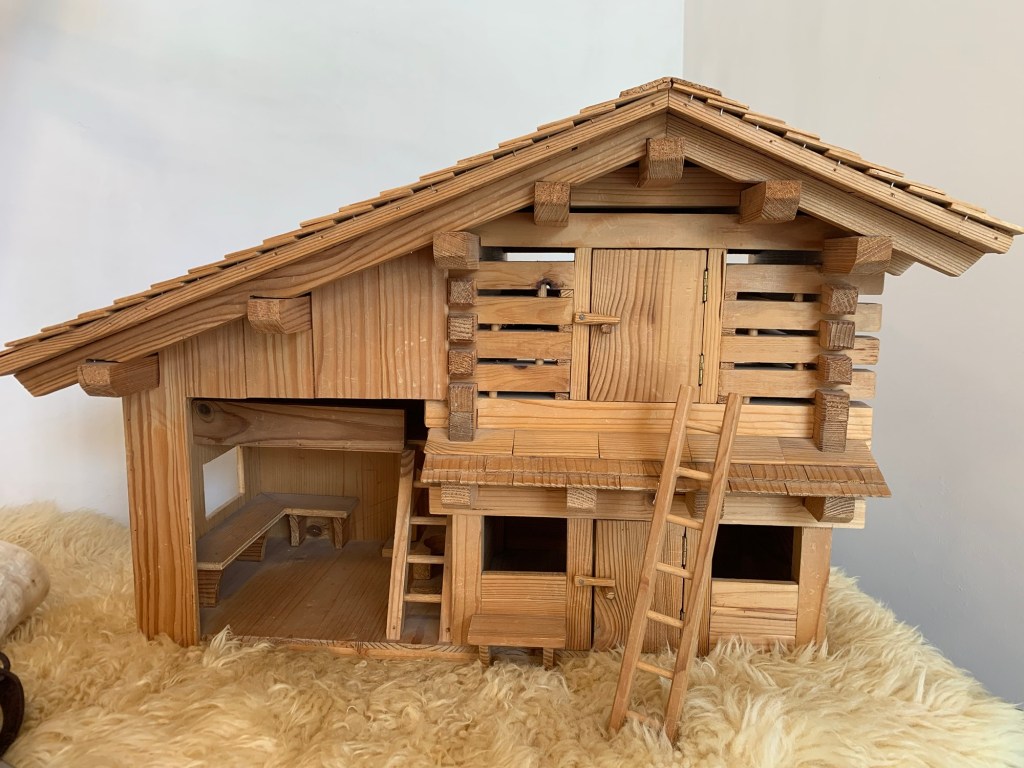 次は憧れのアルムの山小屋。ハイジがおじいさんと過ごした愛情たっぷりの家。キッチンとチーズ、おじいさんの工房、ヤギの小屋、ハイジの干し草のベッド、ペーターのカバン、クララの車椅子まである。屋根裏の窓から見える景色も素敵。