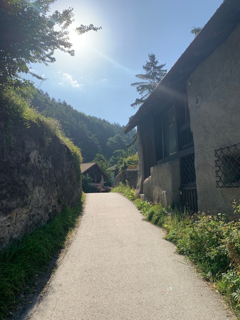 マイエンフェルトの歴史ある小道を歩き出す。