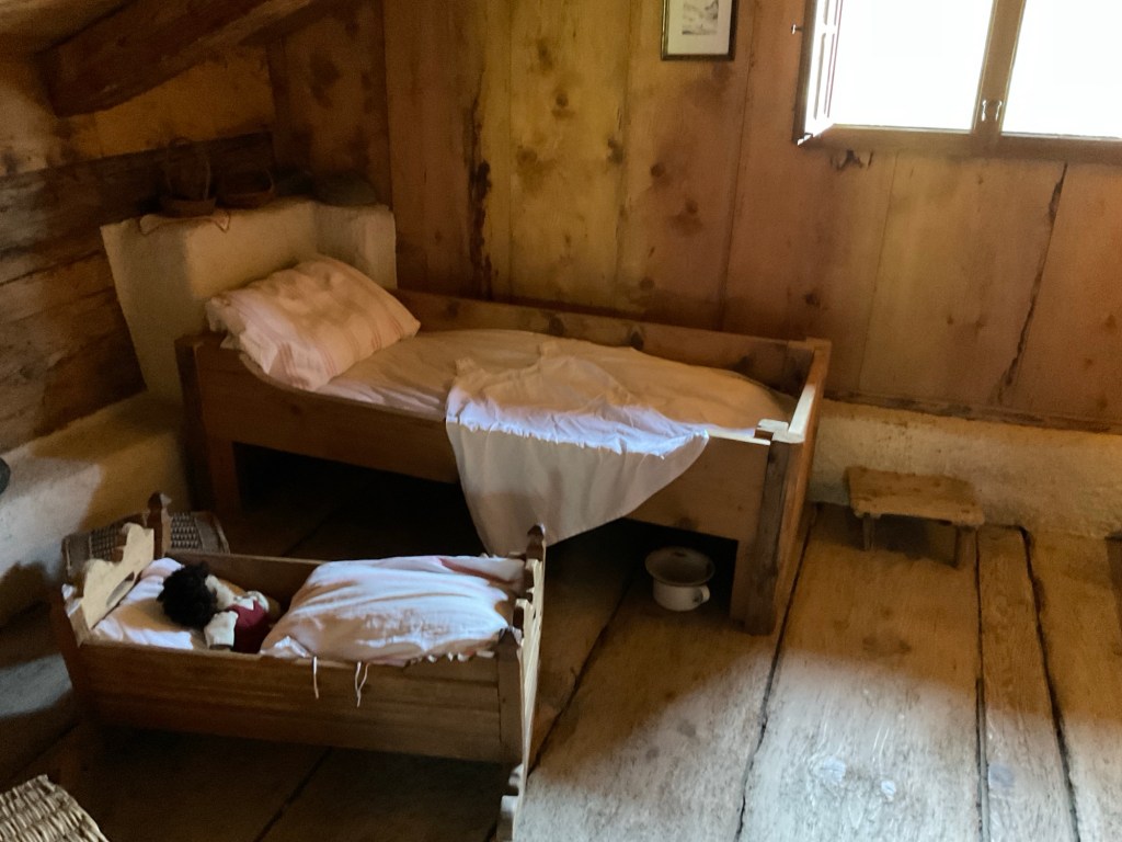 ハイジ村に到着。チケットを購入して1番先に着くのがハイジの家。ハイジとアルムのおじいさんが冬に過ごした家だ。1880年の生活が再現されている。