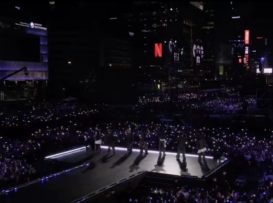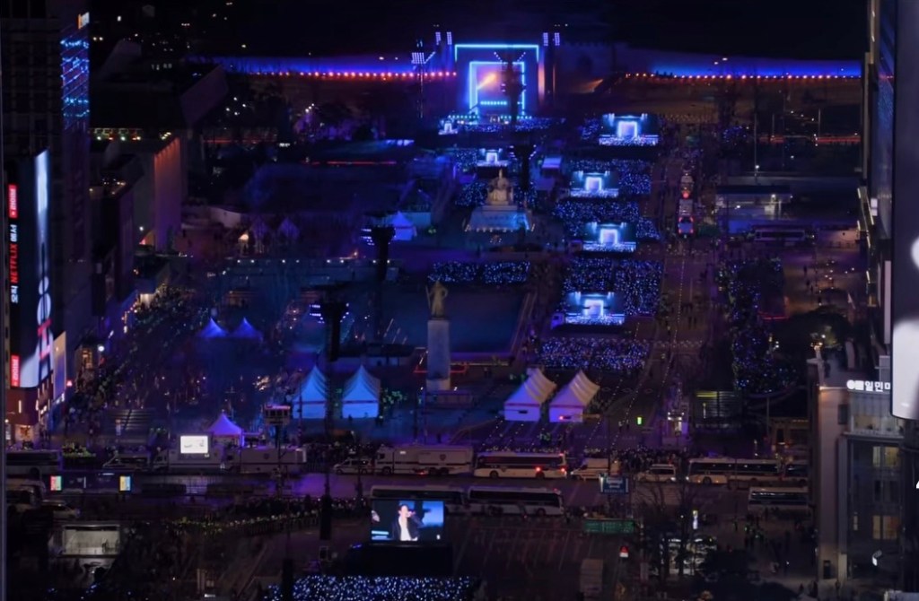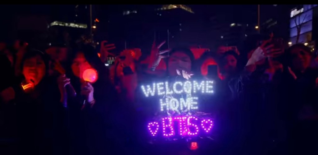 数枚の巨大スクリーンにいたファンの数は半端じゃない。チケット持ってた2万2千人以外に、この日のために貯金して観光で行ったおばさん、フロリダ辞めてソウルに行った春休み学生も合わせてなんと10万4千人だったそう。そりゃ7千人の警察、ドローン警備隊、電車もバスも停まってソウルは大混乱だったでしょうね。
